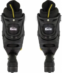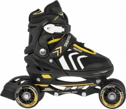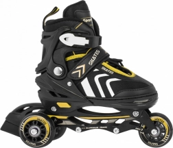 Dette 4-i-1 børnesæt tilpasser sig enhver sæson og færdighed. På få øjeblikke kan du skifte fra in-line til trekskøjter eller til isskøjter. Femtrins størrelsesjustering (34–38) med inderlængde 20,5–23,5 cm ledsages af en semirigid konstruktion for sikker ankelstøtte og komfort under kørsel.
