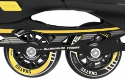 Støvlen har effektiv ventilation, en semipermeabel membran og en formet indersål med blødt EVA-skum beklædt med fløjlsmateriale Velvet. Den tredobbelte lukning (snøring, velcobånd, spænde med lås) holder foden stabil. Aluminiumsrammen med PU-hjul 70×24 mm, hårdhed 85A og ABEC-7 lejer giver en glat og hurtig kørsel; højre skøjte er udstyret med bremse.