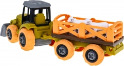 Legetøjet inkluderer en aftagelig trailer og en bevægelig ske til realistiske bondegårdsscenarier.