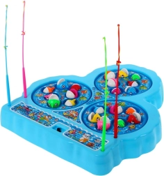 Et sjovt børnespil, hvor man fanger fisk i tre roterende damme, som giver timevis af glæde for 2–4 spillere. Det farverige sæt med 21 fisk og 4 stænger udvikler finmotorik, opmærksomhed og hånd–øje-koordination. Sæt blot batterier i, start rotationen, og fang fiskene, der jævnligt “dukker op” fra vandet.