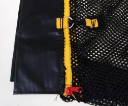 Det pålidelige SkyRamiz-beskyttelsesnet holder både børn og voksne i sikkerhed under hop. Nettet er lavet af PE-materiale i høj kvalitet med højere gramvægt, hvilket gør det bestandigt over for vejr og mekanisk slid. Den farvemarkerede to-vejs lynlås forbedrer synligheden af indgangen og gør det lettere at åbne og lukke.