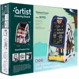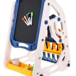 Dobbelt tavle tilbyder en hvid magnetisk overflade på den ene side til skrivning med tuscher og fastgørelse af magneter, mens den anden side er en sort kridtoverflade til at tegne med kridt. Med en særlig holder til kridt forbliver børnenes hænder rene.