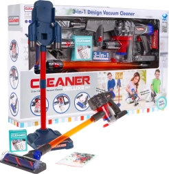 | | 3-i-1 støvsuger med lydeffekter er et legetøj til børn fra tre år. Den lærer dit barn at holde orden på sit eget værelse. Dette legetøj er en særdeles vellykket kopi af en rigtig lodret støvsuger. Den kan nemt og hurtigt omdannes til en lille håndstøvsuger. Enheden udsender sugelyde og suger de medfølgende polystyrenkugler ind, som desuden hvirvler rundt i beholderen efter indsugning. Legetøjet drives af 3 AA 1,5 V batterier (medfølger ikke). |