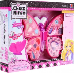 Dette søde børnekosmetiksæt i sommerfugleform vil glæde alle små, der elsker at pynte sig. Indeholder øjenskygger, lipgloss og læbestifter, neglelak samt hårtilbehør – alt opbevaret overskueligt i en kompakt, lukbar palette med spejl. Ideel til børn fra 5 år.