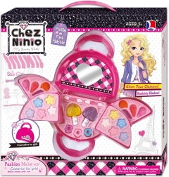 Denne søde og praktiske udklappelige kosmetikhåndtaske til børn rummer en rig palet af makeup, så små stylister kan tage deres første skridt i makeuppens verden. Det bærbare design med hank og spejl sikrer, at makeupsættet altid er lige ved hånden hjemme eller på farten.