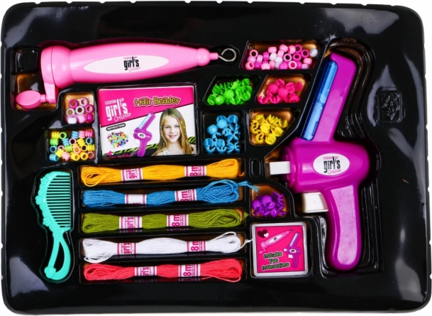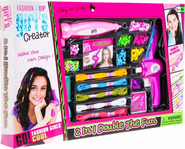 Dette omfattende kreative sæt gør det let og sjovt for børn at lave hårpynt med perler samt armbånd, halskæder, vedhæng og hele smykkesæt. De intuitive værktøjer til fletning og trådning gør processen hurtigere og inspirerer til nye idéer. Med den brede palet af former og farver opstår der hver gang unikke kombinationer.