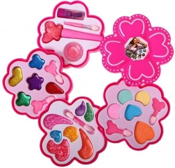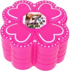 Dette charmerende blomsteretui med makeup vil glæde ethvert barn, der elsker at lege skønhedssalon. Den udklappelige konstruktion med fire niveauer og låg rummer en farverig palet af nuancer og teksturer til fantasifuld makeup af dukker og sikker børneleg.