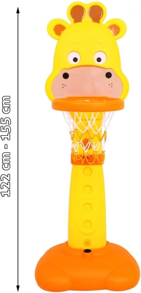 Det søde giraf-sæt motiverer børn til at bevæge sig, udvikler øje-hånd-koordination og fremmer sunde vaner. Højden på kurven kan nemt tilpasses barnets alder og færdigheder (125–155 cm), så sættet vokser med barnet. Den robuste plastkonstruktion og den store base sikrer stabilitet under legen.