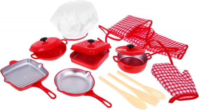 rød sæt til lille kok til børn 3+ – chefkokkostume, gryder og tilbehør, 14 dele