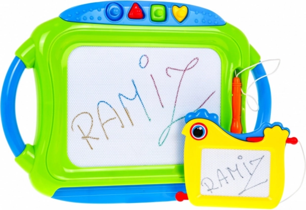 Oplev kreativ leg uden rod med et sæt af to magnetiske tegnetavler – en stor farvet tavle med stempler og en mindre, kompakt tavle til ture. Med de medfølgende penne og stempler udvikler børn finmotorik, fantasi og kreativitet. Billeder viskes nemt ud med ét enkelt træk, så tegningen er gentageligt sjov både hjemme og på farten.