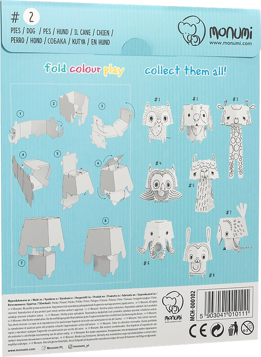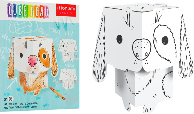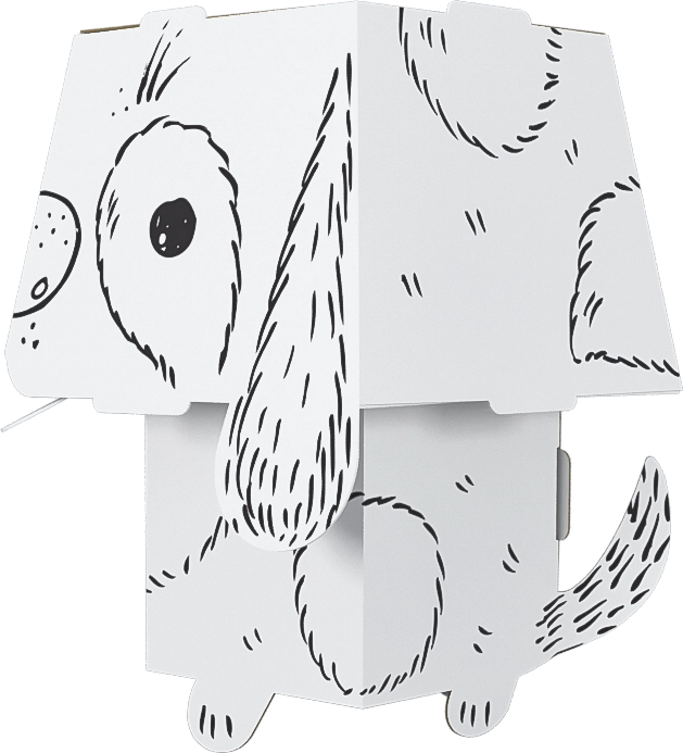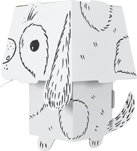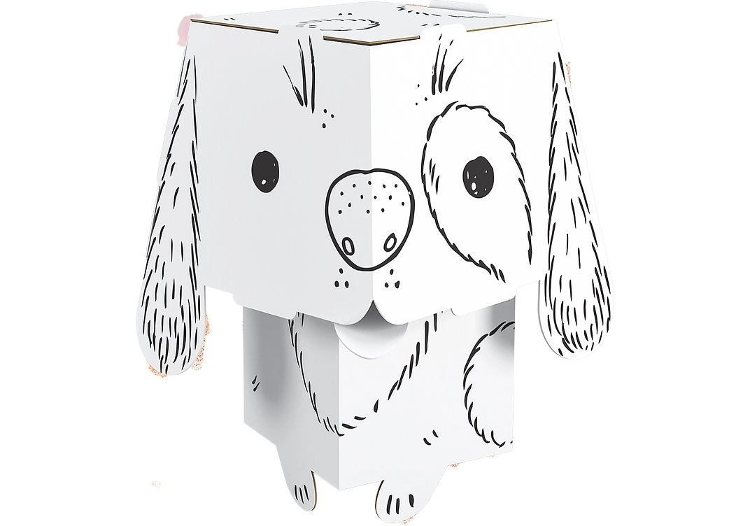 Sjovt og kreativt 3D-farvelægningspuslespil i form af en hund lavet af hvidt karton giver børn timevis af skabende leg. Delene er præcist udskåret og samles nemt uden lim og saks. Den stabile og lette model med professionel sort-hvid grafik er ideel til farveblyanter, tuscher, markere og maling; kartonen absorberer fugt godt, krøller ikke og gennemblødes ikke.