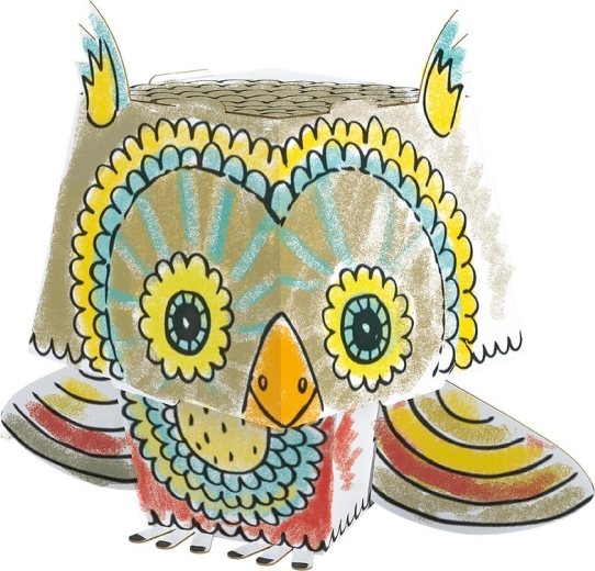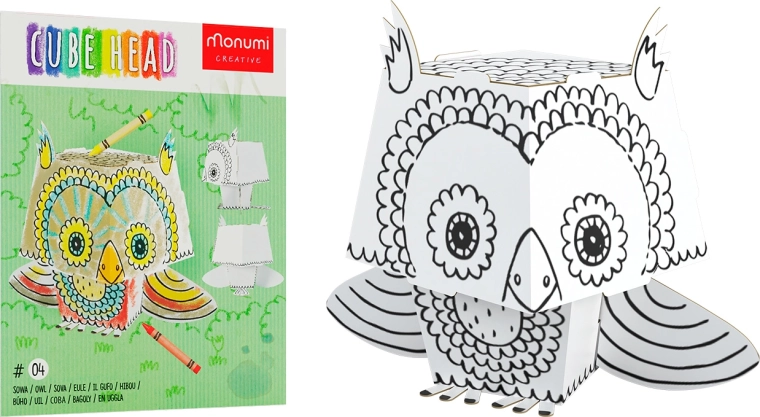 Denne rumlige uglemodel giver børn timer med kreativ underholdning. Professionelt sort tryk med klare konturer indbyder til farvelægning og udvikler finmotorik og fantasi. Kartonen absorberer fugt godt, krøller ikke og gennembløder ikke, så den egner sig til forskellige kunstneriske teknikker.