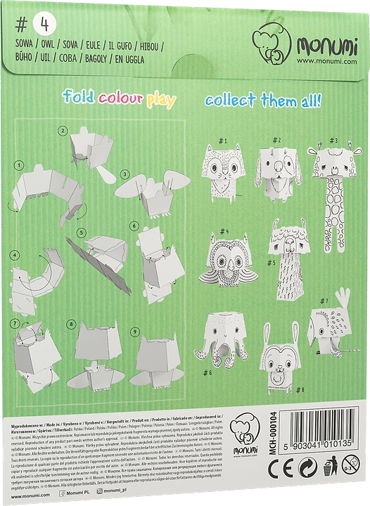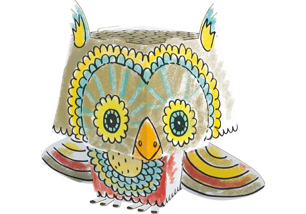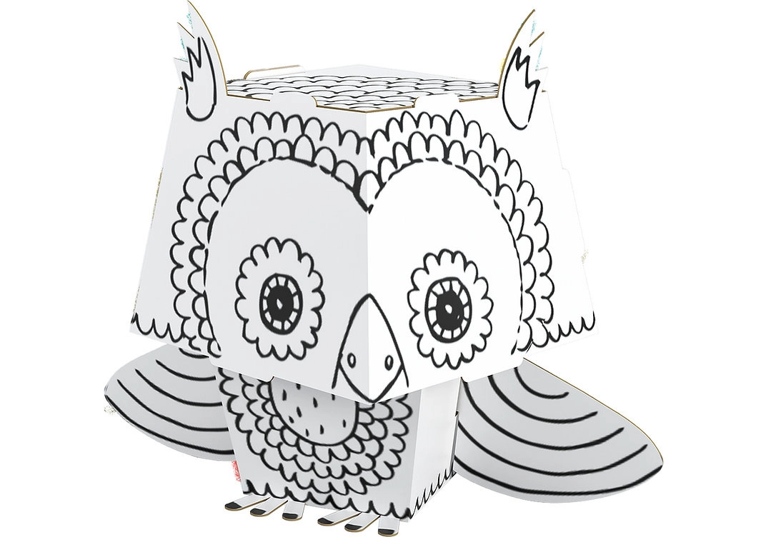 Sjov og kreativ 3D farvelægningsmodel i form af en ugle i hvid karton glæder små skabere. Delene er præcist udskåret og samles nemt uden lim og saks. Den stabile, lette og robuste model er ideel til farveblyanter, tuscher, markere og maling.