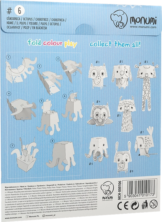 Sjovt 3D-farvelægningspuslespil med ottetalsmotiv udvikler børns kreativitet og finmotorik. Præcist udskårne dele i hvid pap samles nemt uden lim og saks. Den færdige model er stabil, holdbar og let, klar til at blive farvelagt med farveblyanter, tuscher, markers og maling.