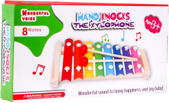 Træ xylofon til børn 3+ Første musikinstrument Regnbuebelægning + køller