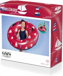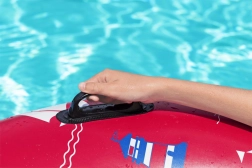 Den praktiske sikkerhedsventil gør oppustning nem og forhindrer luftlækage. Den røde farve med motiver af sejlskibe og fyrtårne giver en original stil, der skiller sig ud i enhver pool.