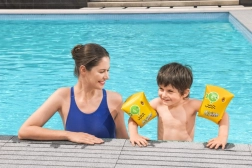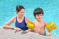 BESTWAY Swim Safe ABC armbånd er et fremragende hjælpemiddel til børn i alderen 3–6 år ved deres første skridt i vandet. Den dobbeltkamrede konstruktion sikrer bedre stabilitet og tryggere opdrift, mens det bløde og holdbare PVC-materiale ikke begrænser bevægelsen.