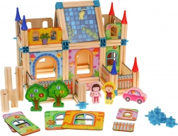 Alle elementer er lavet af behageligt træ med glat overflade, ideelt til små børnehænder. Sættet understøtter udvikling af rumlig forståelse, logisk tænkning og kreativ historiefortælling. Kombinationen af konstruktions- og legeelementer opmuntrer børn til fri leg og fælles byggeri med forældre.