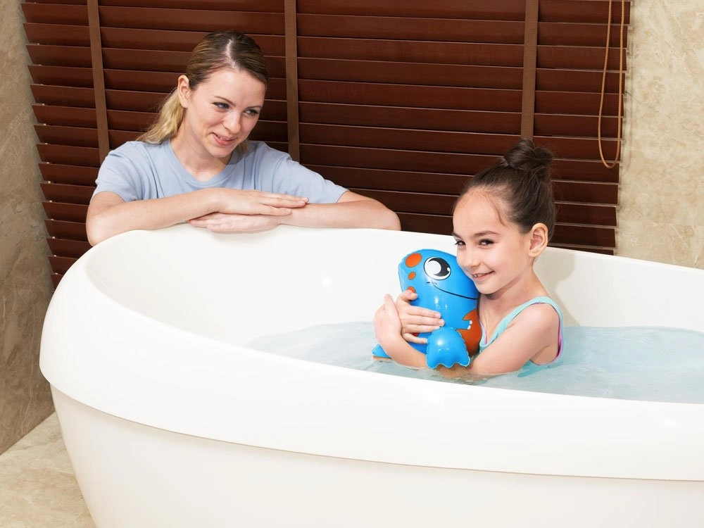 Den oppustelige konstruktion gør, at dinosauren flyder sikkert på vandoverfladen og forvandler badet til en sjov leg.