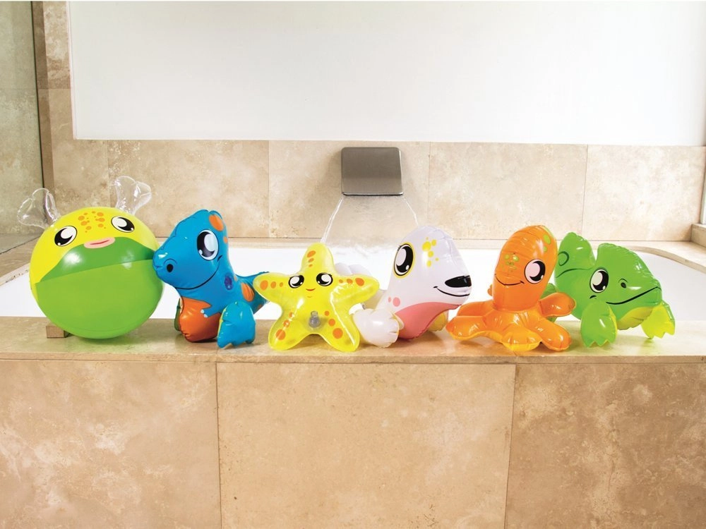 Fremstillet af holdbar vinyl, som er let at rengøre, behagelig at røre ved og tåler daglig brug. Det glade design med markante farver støtter fantasien og en positiv relation til vand.