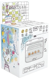 Den kreative malebog Køkken XXL er fremstillet af karton i høj kvalitet belagt med hvidt papir, hvilket sikrer lang levetid. De store, præcist udskårne dele gør den nem at samle uden brug af lim eller saks. Bevægelige dele og åbne områder skaber en interessant og interaktiv struktur.