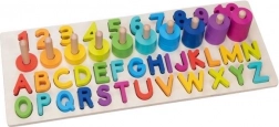 Vores puslespil indeholder 91 forskellige dele, herunder en træbase, bogstaver (26 stk.) og tal fra 1 til 10 samt 55 farvede ringe. Børn kan dermed nemt øve genkendelse og addition af tal samt danne simple ord.