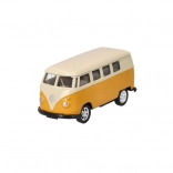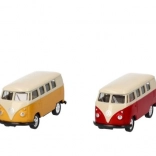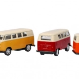 Volkswagen T1 MicroBus er en detaljeret model, der vil begejstre enhver elsker af retrodesign. Denne metalmodel med gummihjul er ideel både til samlerformål og børneleg. Takket være svinghjulsmekanismen skal køretøjet blot trækkes tilbage for at køre fremad af sig selv.