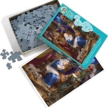 Familiepuslespillet fra COBBLE HILL tilbyder en smart løsning til fælles lægning: én del af motivet indeholder store brikker, velegnet til mindre børn, en anden del små brikker til voksne og mere erfarne læggere, og i midten finder du mellemstore brikker for behagelig lægning for større børn og bedsteforældre. Motivet Hellig nat byder på en rolig atmosfære og smukke detaljer.
