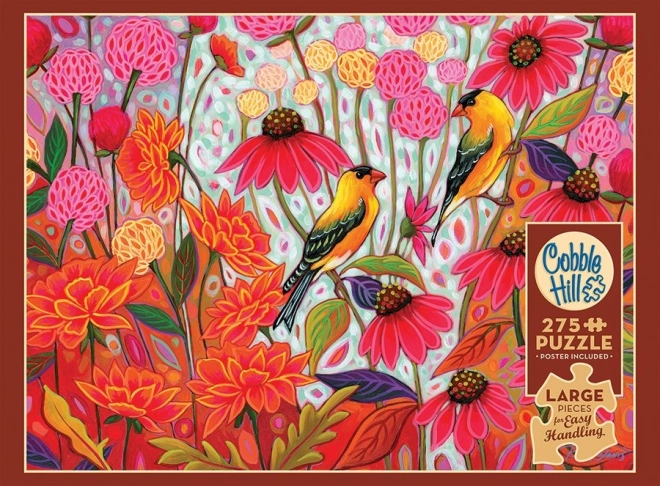 Dyk ned i den farverige verden af puslespil med et motiv af stillitser om foråret. Dette puzzle indeholder 275 ekstra store brikker designet til lettere håndtering og sjov for alle generationer.