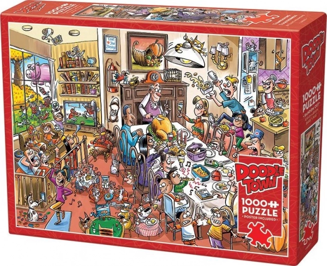 COBBLE HILL puslespil fra DoodleTown-serien: Glad Thanksgiving tilbyder en enestående oplevelse for alle puslespilsentusiaster. Brikker med utraditionelle former og en mere kompliceret opbygning sikrer timevis af underholdning. Når du er færdig, venter et smukt billede i størrelsen 67,6 x 48,9 cm.