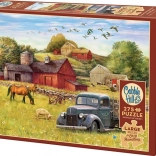 Motivet “Sommer eftermiddag på gården” bringer en rolig landlig stemning og behagelige farver, som glæder både øjne og sind. Takket være de større brikker kan du pusle uden hastværk og med maksimal komfort.