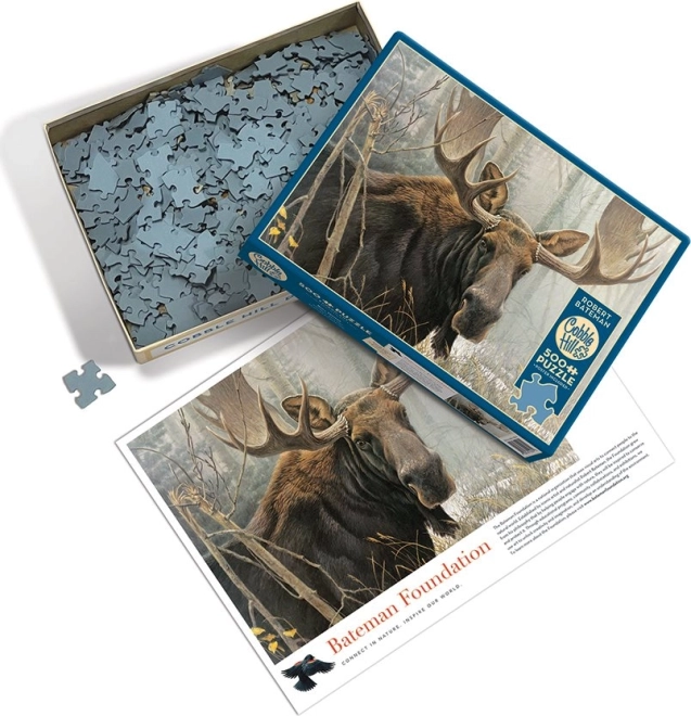 Puslespil COBBLE HILL Elg 500 brikker giver en unik læggeoplevelse. Den særlige stansning følger ikke et almindeligt gitter, så hjørner og kanter på brikkerne er ikke altid på linje. Det gør brikkerne usædvanligt formede og helheden mere visuelt attraktiv og underholdende.