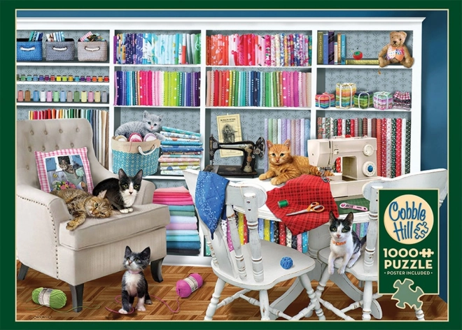 Oplev skønheden ved et puslespil med motiv af et syatelier: COBBLE HILL-puslespil med 1000 brikker byder på en ukonventionel stansning med brikker i usædvanlige former, som giver højere sværhedsgrad og en sjov udfordring. Der medfølger også en plakat for nemmere samling.