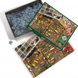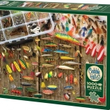 Et stilfuldt puslespil med motiv af fiskegrej er et ideelt valg for alle, der kan lide udfordringer og præcis udførelse. Producenten COBBLE HILL bruger en særlig stansning, der ikke følger det klassiske gitter, så brikformerne er varierede, og lægningen bliver mere interessant og fængende.