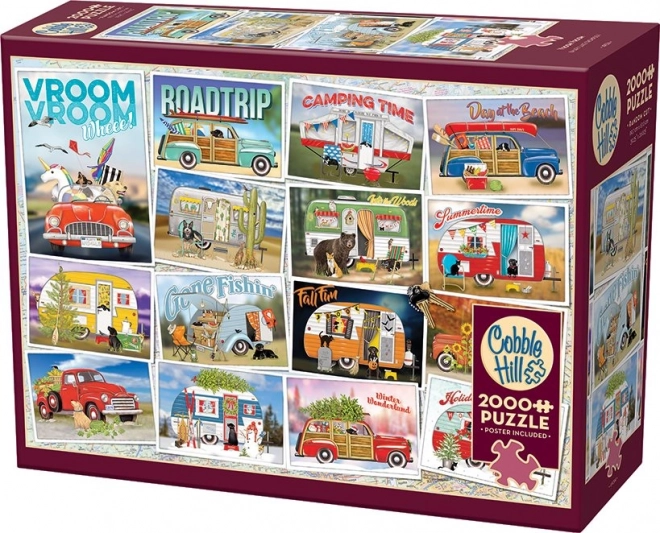 Puzzle Vroom Vroom fra Cobble Hill giver en unik puslespilsoplevelse med 2000 brikker, som har usædvanlige former og højere sværhedsgrad for ægte entusiaster.