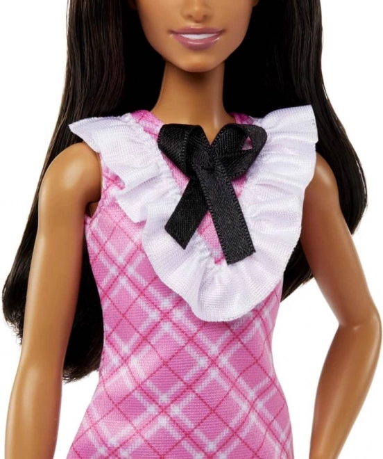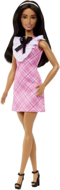 BARBIE Fashionistas-dukker fejrer mangfoldighed og viser, hvor sjovt det er at udtrykke personlighed gennem mode. Denne dukke med langt mørkt hår og perlehårbøjle imponerer med en lyserød ternet kjole med markant flæsekrave og sort sløjfe. Takket være de gennemarbejdede detaljer og tidløse stil er den ideel til hverdagsleg og som udvidelse af samlingen.