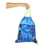 Den stilfulde sko-/sportspose ST. RIGHT i blå med geometrisk klodsemønster kombinerer moderne design og daglig funktionalitet. Fluorescerende snore skiller sig ud og gør det samtidig nemt at bære og at lukke hurtigt. Posen er et godt valg til skole, fritidsaktiviteter, idræt eller korte udflugter.