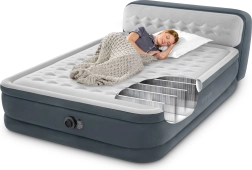 Den indbyggede elektriske pumpe muliggør hurtig og nem oppustning og tømning. Den behagelige velouroverflade er skånsom mod huden og forbedrer lagenets greb. Det integrerede oppustelige hovedgærde giver støtte ved læsning og afslapning. Sengen leveres med en transporttaske og en reparationslap.