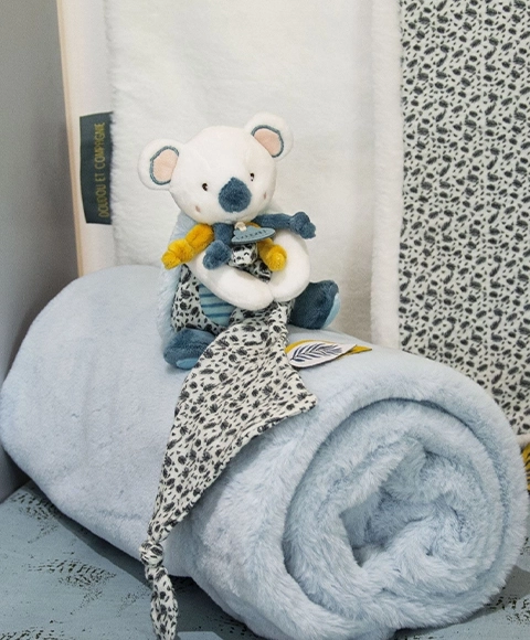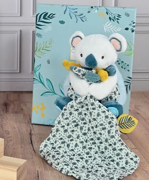 Dette sæt er ideelt til daglige kram, putning og beroligelse. Koala Yoca bliver hurtigt din babys elskede ledsager.