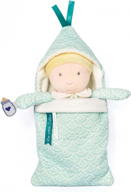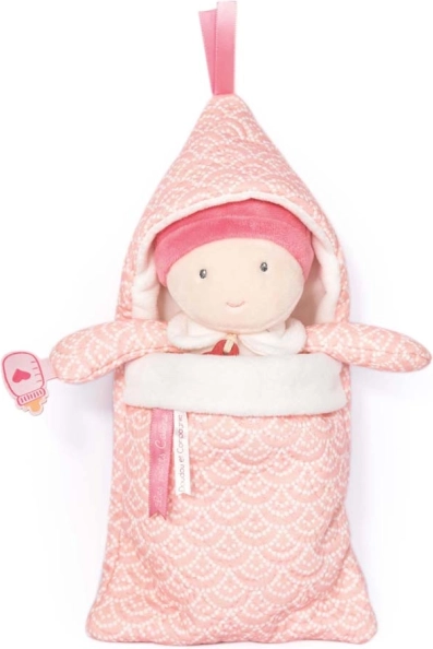 Oplev glæden ved leg med denne søde doudou-dukke, som er omhyggeligt pakket ind i et lyserødt, blomsteret tæppe. Ideel til at berolige børn og stimulere deres fantasi.