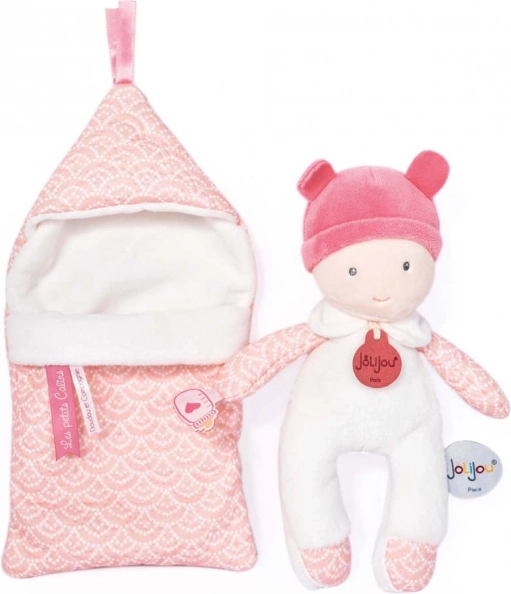 Det søde Doudou Jolijou-baby i en aftagelig sovepose giver blid krammekomfort og de første lege fra fødslen. Den er lavet af blød plys og premium-materialer, opfylder europæiske CE-standarder og takket være den kompakte størrelse på 20 cm ligger den perfekt i selv de mindste hænder.