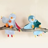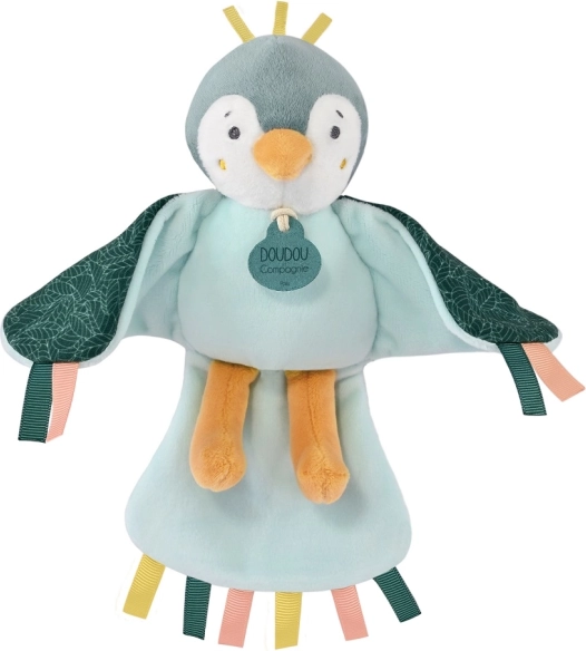 Den musikalske plysfugl fra Doudou er designet til at berolige babyer med sine blide lyde og sin blødhed. Den har charmerende bånd på vinger, hale og hoved, som børn trygt kan gribe, gumle i og dermed træne deres finmotorik.