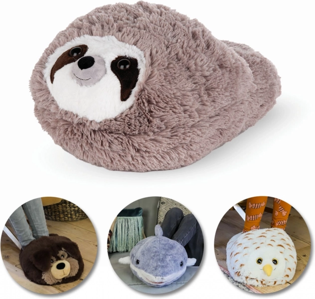 Den varme Cozy Noxxiez-hjemmesko formet som et sødt dovendyr er det perfekte valg til alle, der vil have varme fødder og maksimal komfort. Takket være den éndelte konstruktion varmer den begge fødder samtidig, og den puffy fyldning giver blød og sikker varme uden kabler og kemiske varmepuder.