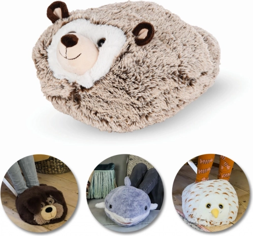 Én-dels, superblød og dejlig varm, kæmpestor hjemmesko, der fungerer som fodvarmer og samtidig kan bruges som en stilfuld accessory eller legetøj, fordi børn elsker søde ting. Den superbløde fyldning og det behagelige indre giver naturlig opvarmning af fødderne uden risiko for forbrænding eller overophedning. Velegnet til indendørs brug, ideel til afslapning på sofaen eller i sengen. Brug den, når du ser tv, spiller spil, arbejder ved computeren, læser en bog eller ved andre afslappende aktiviteter, hvor du sidder eller ligger. Denne produktserie tilbyder forskellige dyremotiver, så hvert familiemedlem kan have sin egen dyreven ved fødderne. I Cozy Noxxiez’ sortiment finder du i mange tilfælde også en varm 3-i-1 plyspude eller et tæppe med hætte og lommer i samme dyremotiv, så du kan have et komplet varmesæt i ensartet design. I 2023 kom der som helt nyt produkt også tv-hoodie-tæpper til børn i alderen 3–6 år og 7–12 år, som tematisk passer til nogle af kollektionerne.