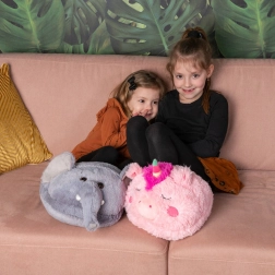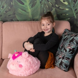 Den stilfulde lyserøde enhjørning med farverigt horn begejstrer ved første blik og gør enhver stue eller børneværelse ekstra hyggelig.