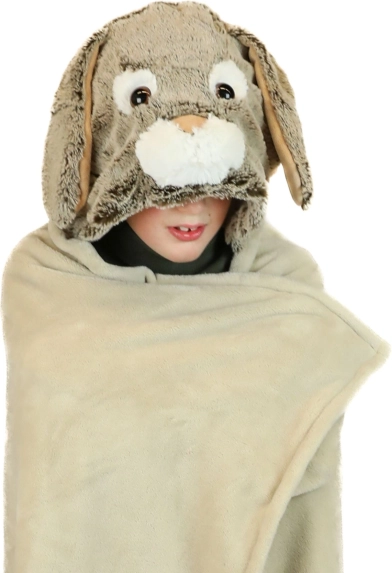 Giv børn både glæde og varme i ét. Det varme Cozy Noxxiez-tæppe af superblød fleece er skønt som både tæppe og sjov rekvisit til leg. Hætten med kaninmotiv og to hjørnelommer formet som poter holder hænderne varme og styrker barnets fantasi.