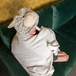Dette søde, varme hættetæppe gør hver puttestund til et eventyr. Plysset hætte med ører og fåreansigt og praktiske poter-lommer vækker børns fantasi og holder hænderne dejligt varme. Den lette og åndbare fleece føles behagelig og varmer skønt.