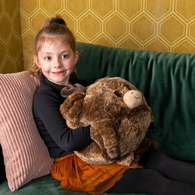 Denne multifunktionelle plyspude er perfekt til børn i alle aldre. Den er lavet af super blødt materiale og har åbninger på siderne, der gør den til et behageligt hvilested og muffe til håndvarme. Puden er ideel til rejser på grund af dens kompakte størrelse, nem at bære og holder hænderne varme. Desuden kan sideåbningerne også bruges som skjult opbevaring til små skatte.