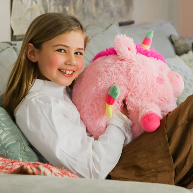 Denne varme plyssede enhjørning Cozy Noxxiez er lavet af super blødt og behageligt materiale, der er designet til at bringe børn glæde og komfort. To strategisk placerede åbninger på siderne fungerer som den perfekte muffe til håndvarme eller endda som et hemmeligt skjulested for små skatte.
