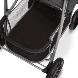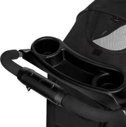 Klapvognen kan nemt foldes til kompakte mål for transport og opbevaring i bagagerum. For forældrekomfort medfølger organizer med kopholder ved håndtaget samt en praktisk taske med ruminddeling i pakken.